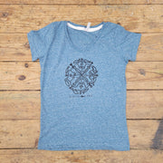 Make a splash in Sue's Ladies Round Fish V-neck! Stand out in comfort with this playful and quirky design in a cool blue hue. Perfect for those looking for a fun and unique addition to their wardrobe. (Fish puns are available upon request.)🐟