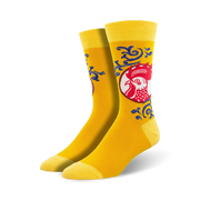 Add some fun to your sock drawer with these playful Men's Red Rooster Socks from Socksmith. The quirky yellow and red rooster design is sure to make you stand out, while the comfortable fit ensures your feet are happy all day long. Don't be a chicken, grab a pair today!