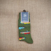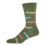 Enjoy the catch of the day with our Men's Trout Socks! Made from soft cotton, these socks feature a playful trout design - perfect for any fishing enthusiast. Comfortable and stylish, these socks are sure to make a splash in your wardrobe. Lure them in with these must-have socks!