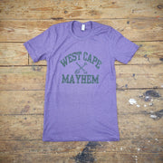 When life starts to feel like chaos, slip into this cozy West Cape Mayhem Short Sleeve Tee. Unisex purple and perfect for any occasion, it's the perfect way to keep the mayhem contained - or at least covered up!