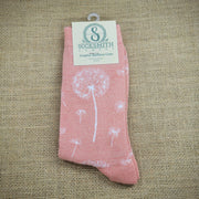 Step into comfort with these playful Women's Dandelion Dreams Bamboo Socks. Made from soft rayon derived from bamboo, their peach color and delicate dandelion print add a whimsical touch to your everyday look. These socks feel gentle on your skin while bringing a lighthearted charm to your outfit. Perfect for brightening your day with every step!