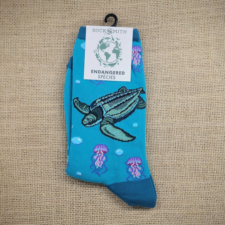 Step into fun with these Women's Leatherback Turtle Socks! Featuring an adorable blue leatherback turtle design, these socks add a splash of playful charm to your outfit. Soft and comfy, they’re perfect for keeping your feet cozy while showing off your love for sea turtles in a cute, colorful way.