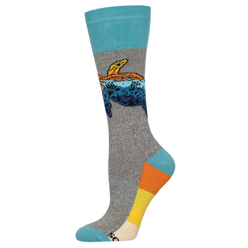 Add a touch of whimsy to your next hiking adventure with the Turtle Boot Socks by Outlands x Atomic Child. These heather gray socks feature a turtle silhouette, perfect for pausing and reflecting on your surroundings. Plus, their moisture-wicking material keeps your feet dry and comfortable on the trail.
