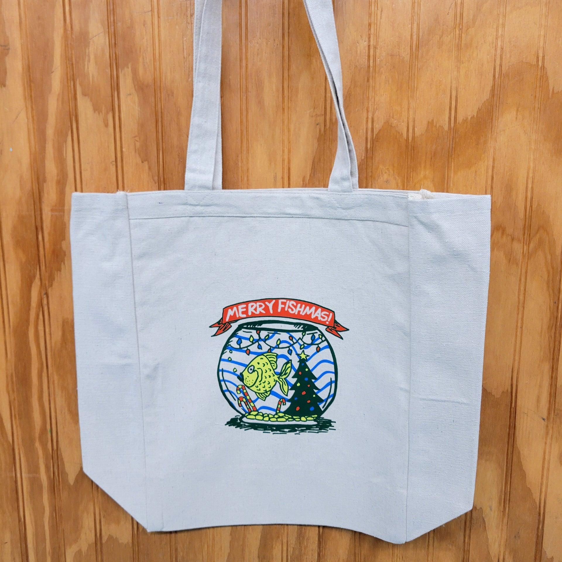 Dive into the holiday spirit with our Merry Fishmas Large Tote Bag! Perfect for carrying all your seasonal essentials, this spacious tote brings festive cheer wherever you go. With its playful design and generous capacity, it's an ideal gift for fish lovers and holiday enthusiasts alike. Whether you're heading to holiday gatherings, the market, or just spreading joy, this bag makes a splash with style and practicality.